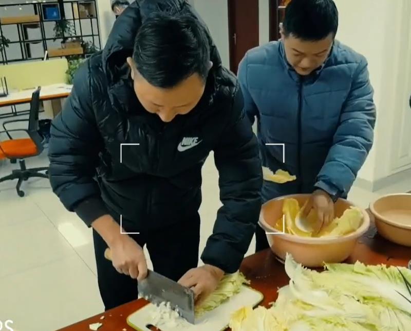 伙伴們積極參與、各顯身手,一邊嘮家常、一邊憶往昔,大家分工合作:拌肉餡、搟餃子皮、包餃子,現場其樂融融,溫馨有趣。